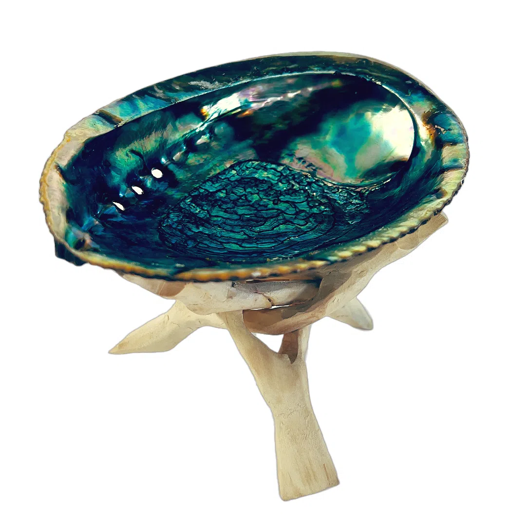Smuk farverig abalone muslingeskal, som oftest bruges i healings ritualer sammen med en salvie smudge eller Palo Santo pind. Symbolismen går ud på at forbinde de 4 elementer. Muslingeskallen symboliserer dermed “vand” elementet. Salvierøgelsen eller Palo Santo pinden symboliserer “jord” elementet. Ilden i den tændte røgelse symboliserer elementet “ild”, og røgen fra røgelsen symboliserer “luft” elementet.