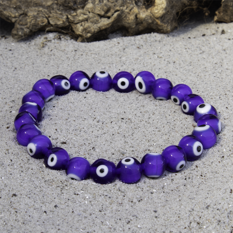 Armbånd med blåt Tyrkisk Øje i 8 mm. Kendt som en stærk amulet mod negativ energi og det onde øje.