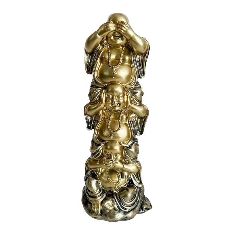 Denne elegante statue med tre stablede Buddhaer bærer en dyb spirituel symbolik og tidløs visdom. Figuren illustrerer den klassiske lære om Se intet ondt, hør intet ondt, tal intet ondt – en påmindelse om at beskytte sin energi, sine tanker og sine ord.
