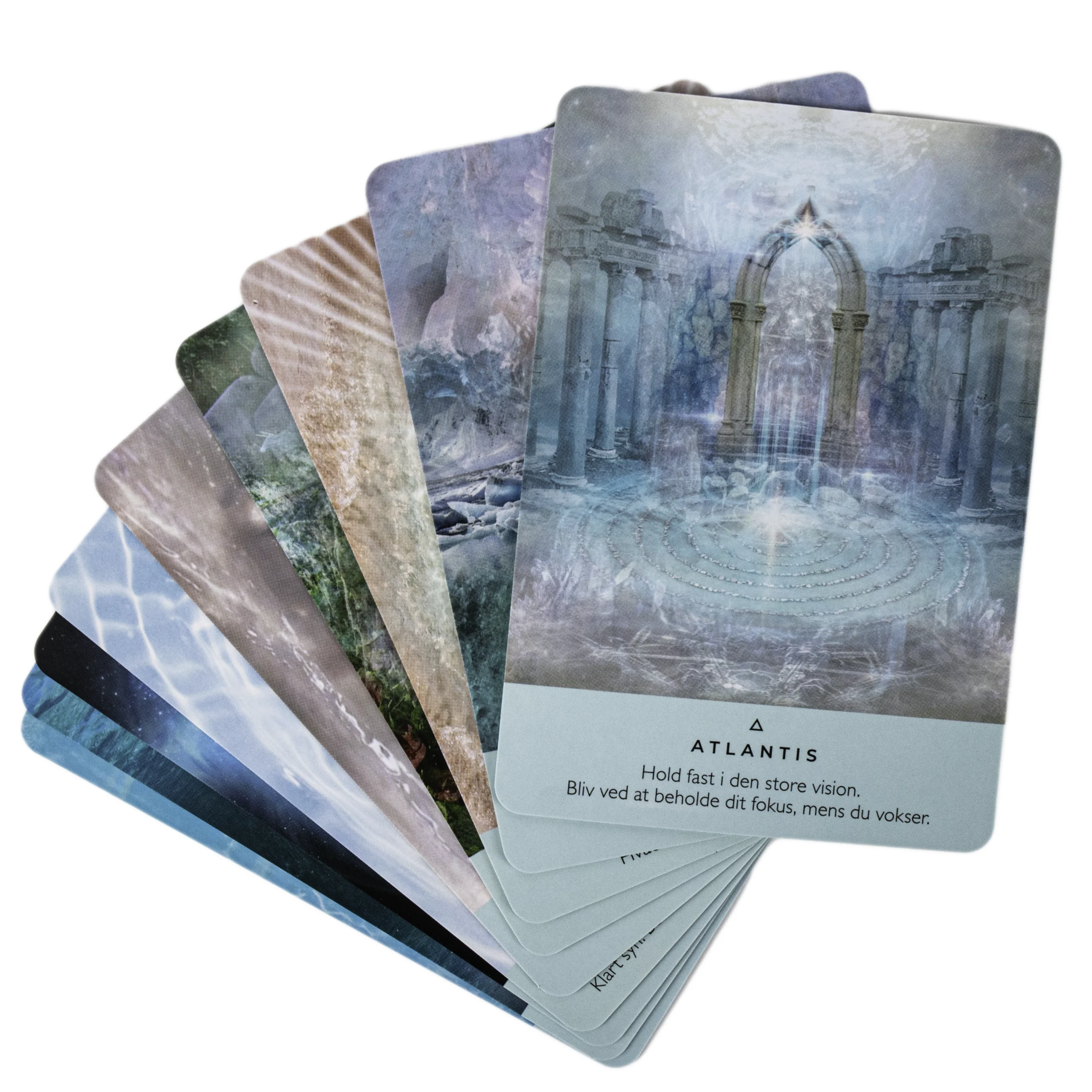 “Vand er en af naturens store gaver, der igangsætter og understøtter livet på Jorden. Dette betagende kortsæt afslører vandenes hellige visdom og du får hjælp til at udnytte din egen indbyggede evne til at heale ved hjælp af alle aspekter af vand.”
