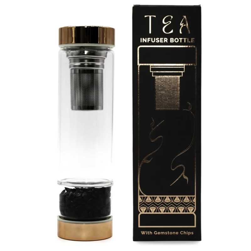 De sorte onyx sten i flasken giver en smuk og beroligende æstetik. Sort onyx kaldes en beskyttelsessten. Den siges nemlig at sikre balance mellem sjæl og krop. Stenene holdes sikkert på plads i bunden af flasken og tilføjer et lækkert touch til det samlede design.