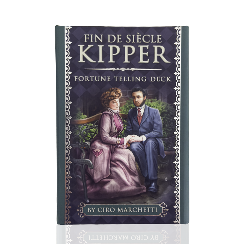 “In his Fin de Siècle deck, situated in Victorian England, Ciro Marchetti has created the contemporary hier to the Kipper tradition. With three supplemental cards, the deck represents human experiences across all echelons of society. Card meanings are provided by three expert Kipper readers. Includes 39 cards and 83-page illustrated guidebook.”