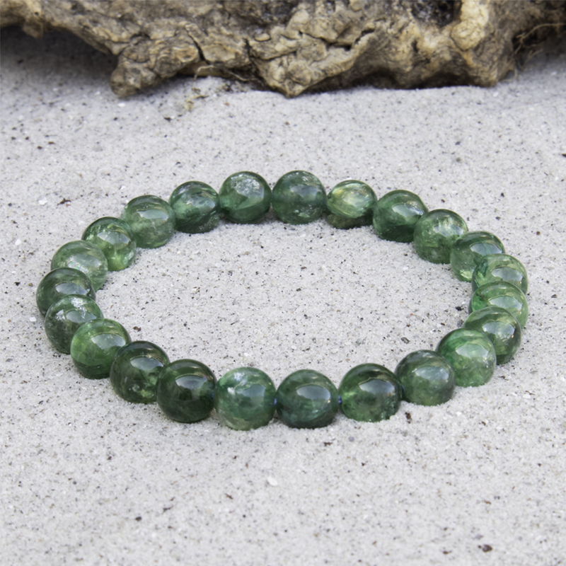 Med sine 8 mm polerede kugler, sat på elastisk tråd, er armbåndet både behageligt at bære og et unikt spirituelt smykke.