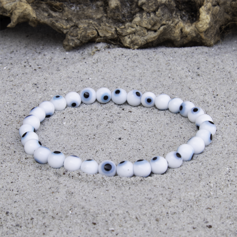 Armbånd med Hvidt Tyrkisk Øje i 6 mm. Kendt som en stærk amulet mod negativ energi og det onde øje.