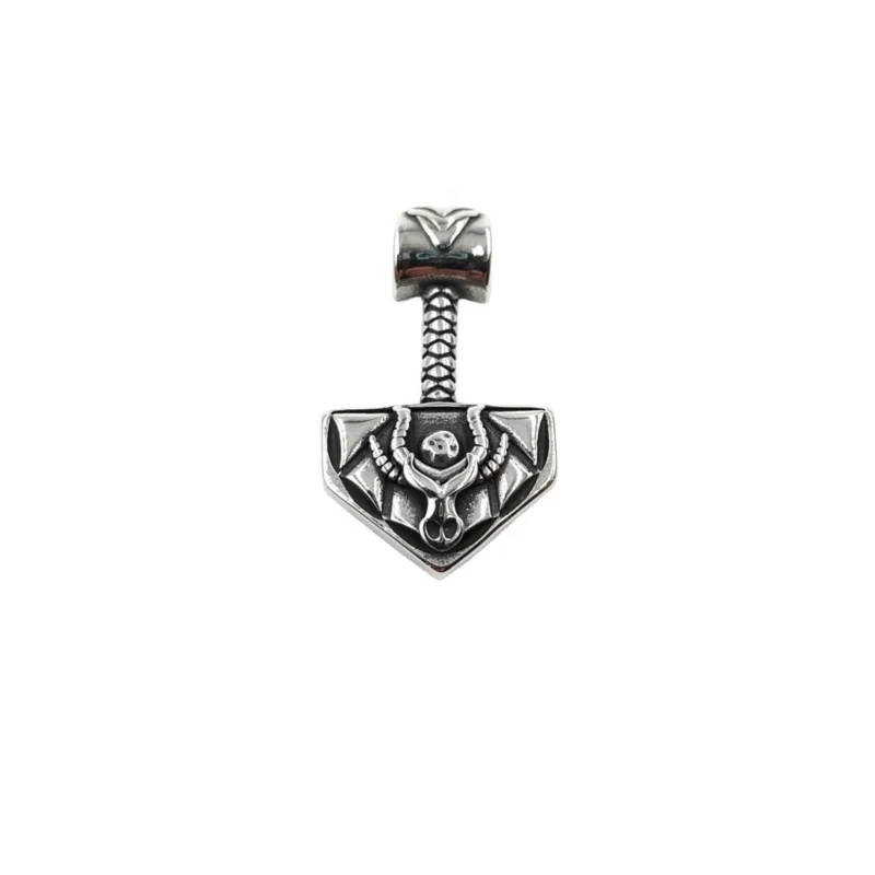 Vedhængets detaljerede design giver smykket et råt og autentisk udtryk, som leder tankerne mod de gamle nordiske traditioner og den stærke krigerånd, der kendetegnede vikingetiden.