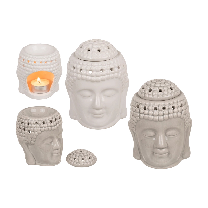 Med denne smukke Buddha oliebrænder / aromalampe kan du skabe en intim, duftende og meditativ stemning i dit hjem. Lampen er lavet i keramik i to farver, og med det aftagelige låg kan du let placere æteriske olier eller duft-chips, der ved opvarmning afgiver deres fulde aroma.