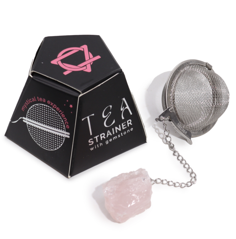 Den smukke rosakvarts klynge, der pryder denne si, er mere end bare en dekoration. Rosakvarts er kendt for sin kærlighedsgivende energi og forbindes med kærlighed, harmoni og følelsesmæssig balance. Ved at bruge denne te-si får du ikke kun den perfekte kop te, men du kan også opleve de kærlighedsfulde og beroligende egenskaber, som rosakvartsen tilfører.