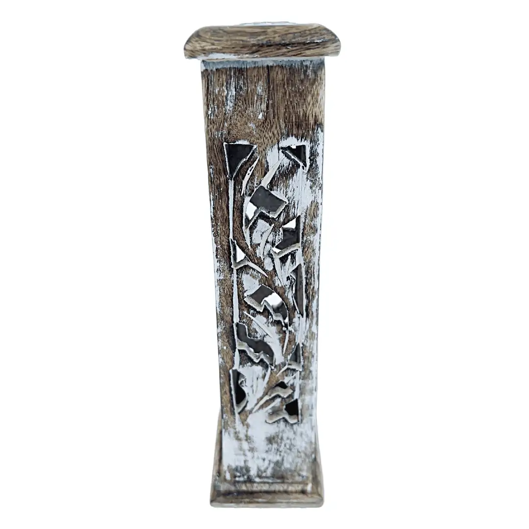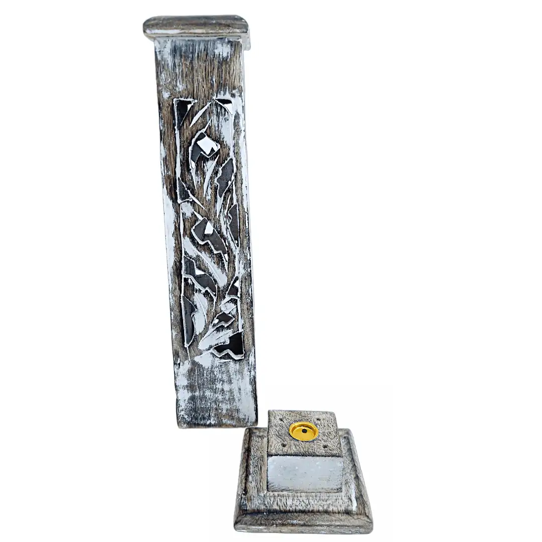 Smuk hvidvasket røgelsesholder tårn i mangotræ.