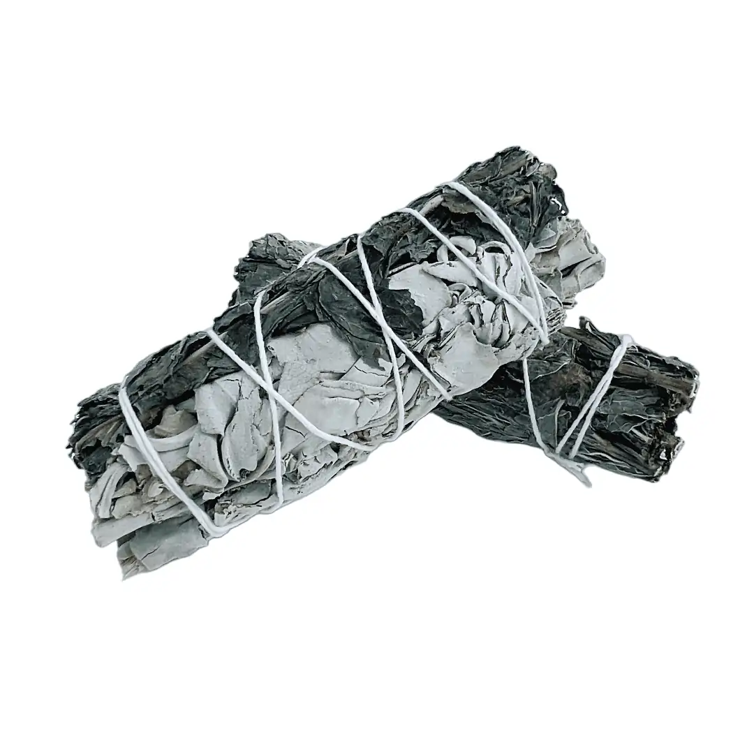 En hvid salvie og pebermynte smudge er en kraftfuld kombination af hvide salvie blade og tørrede pebermynteblade. Disse bruges i spirituelle ceremonier til at rense og fornye energien i rummet og hos personer.